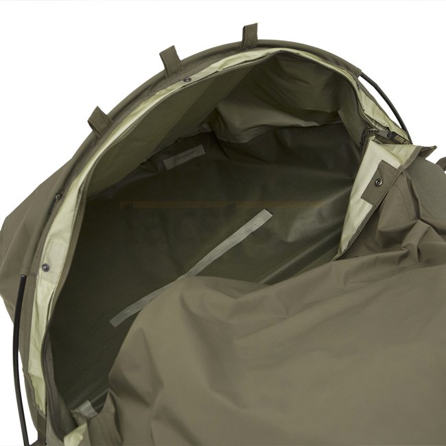 A one-man tunnel tent for special unit personnel. Two all-round zippers allow a middle part to be opend. The zippers are made waterproof by specially designed storm flaps. The integral mosquito net can be closed separately. Five loops on the back hold the insulating mat in place.