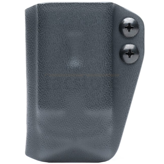 The Crucial Concealment Covert Mag Holder is a versatile and durable magazine pouch designed for both inside-the-waistband (IWB) and outside-the-waistband (OWB) carry. Its ambidextrous design allows for easy conversion to suit various carry positions, providing flexibility and convenience for users. Constructed from .080" Kydex, this mag holder offers a thin, low-profile form without compromising durability.
