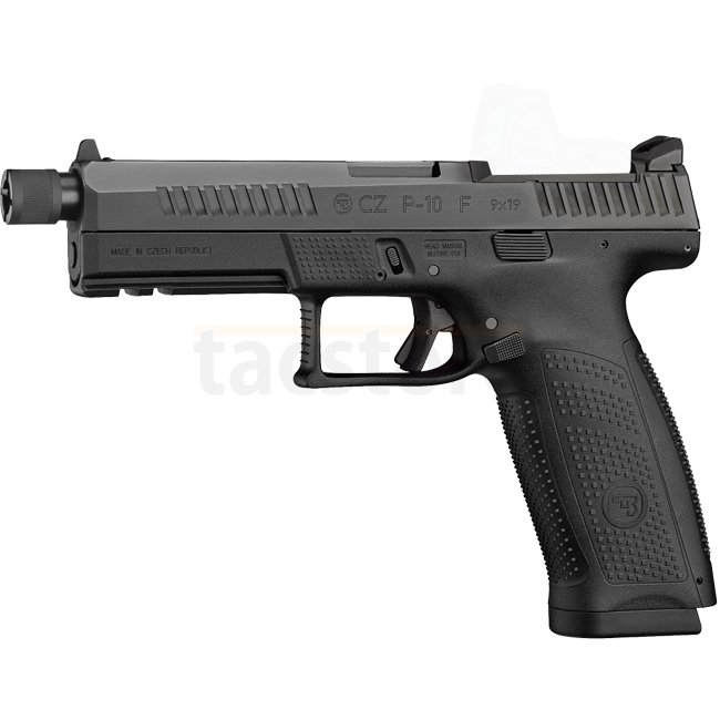 The CZ P-10 F OR SR (Optics-Ready-Suppressor-Ready) is a full-size model that combines the features of an optics-ready slide and a suppressor-ready extended barrel. This design allows for the quick and easy mounting of a red dot sight and a suppressor, catering to modern shooting preferences. The pistol is equipped with high metal co-witness sights to ensure reliable aiming in case the optic is damaged or fails.