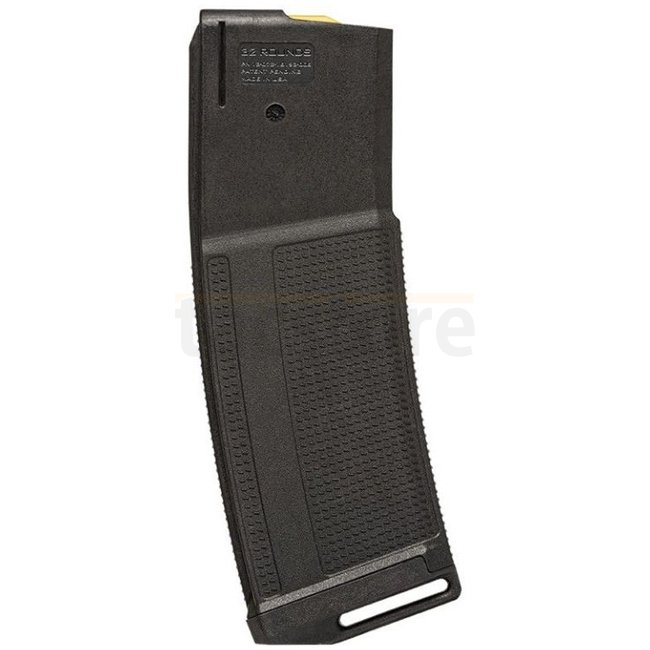 Made from carbon fiber-reinforced polymer, the magazine is lightweight yet highly resistant to impact, heat, and deformation. Reinforced feed lips and an anti-tilt follower ensure consistent feeding, even under high rates of fire. The textured exterior provides a secure grip in wet or gloved conditions.