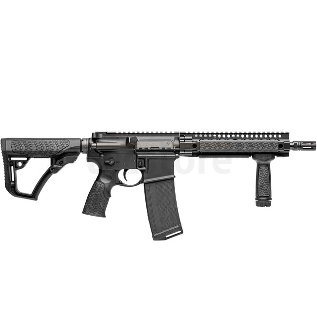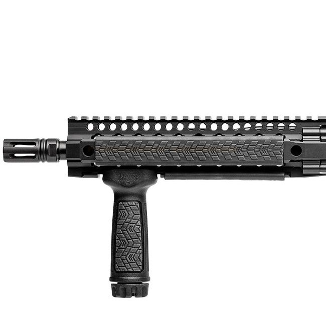 - Daniel Defense furniture: Buttstock, pistol grip, and vertical grip with soft-touch overmolding for comfort and control.