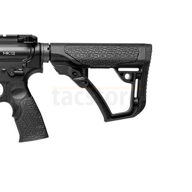 The Daniel Defense MK12 5.56 NATO is the evolution of the special purpose rifle, built around an 18-inch Cold Hammer Forged stainless steel barrel that features a chamber formed during the Cold Hammer Forging process for exceptional chamber-bore alignment. This, together with a DLC finish, delivers unprecedented accuracy and long-term durability. The MK12 uses a rifle-length direct impingement gas system with the MK12 low-profile gas block built to Crane specifications, and is fitted with a 12-inch free-floating Picatinny quad rail to accommodate optics and mission accessories.