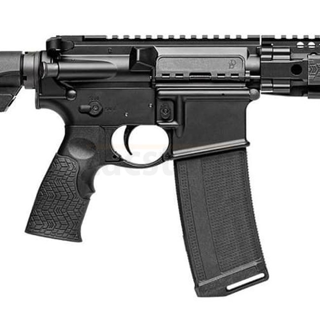 - Muzzle device: Daniel Defense Improved Flash Suppressor, 17-4 PH stainless steel, salt-bath nitride finished.