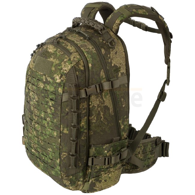 The Direct Action Dragon Egg Enlarged Backpack - PenCott WildWood is a versatile 30L backpack, suitable for everyday use or as a 3-day patrol pack. Made of Cordura 500D and laser cut laminate with hydration system pockets, internal zippered mesh pocket, o