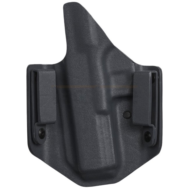 A reliable OWB holster for Glock 17 made of Kydex with a secure 50mm Belt mounting system. Lightweight at 119g.