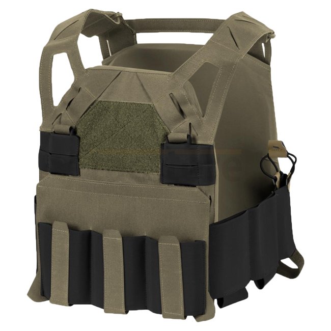 A sophisticated, low profile plate carrier suitable for under-jacket wear or external vest. Lightweight, featuring elastic cummerbund, magazine pockets, and front flap for various magazines. Ideal for CQB with minimal loose parts, large Velcro® panels for