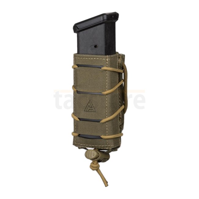 "Just like our rifle pouch, our Pistol pouch is designed for speed reloads but with secure magazine carry at the same time. The special internal material, combined with tension-adjusting elastic cord, prevents the magazine from falling out if it gets snagged. "