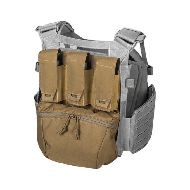 Assault panel for Direct Action SPITFIRE Plate Carrier with rapid reconfiguration design. Features Velcro pouches for flash-bangs, universal cargo pouch, velour lining, and hydration bladder pocket. Made of Cordura 500D and 210 Nylon. Weighs 292g. Suitabl