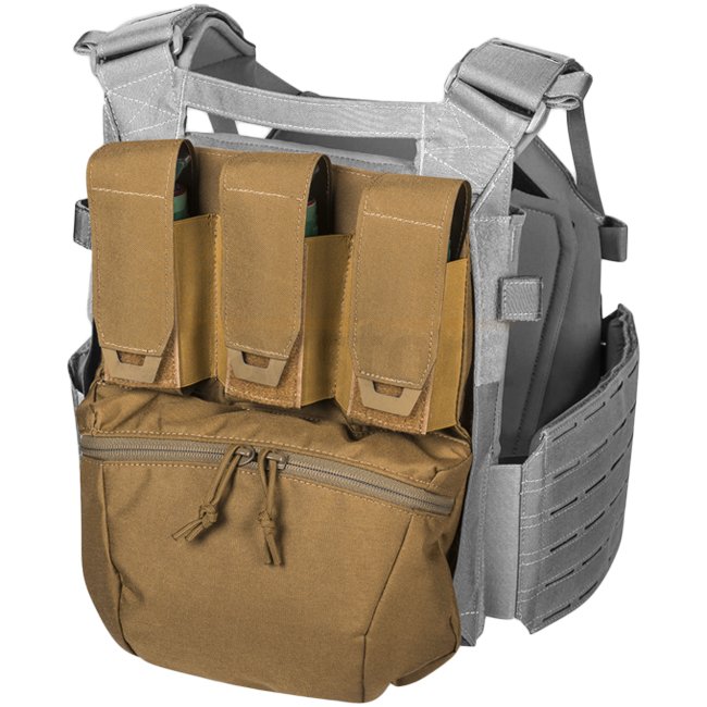 Assault Panel fits SPITFIRE Plate Carrier or HALIFAX backpack. Features Velcro pouches for flash-bangs/magazines, universal cargo pouch, soft-lined pocket for sensitive items, and hydration bladder/breaching tools pocket. Made of Cordura 500D and 210 Nylo
