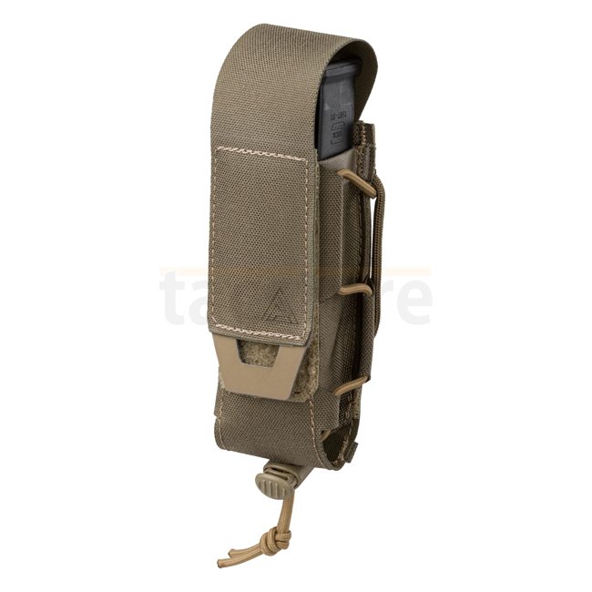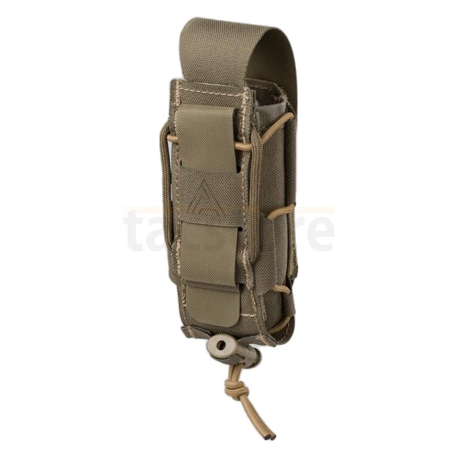 TAC RELOAD PISTOL MK II is a development of our previous TAC RELOAD PISTOL POUCH. The main change was to integrate our elastic cord adjustment system, enabling custom adjustment of the magazine release force, as well as reconfiguration to single-stack magazines.