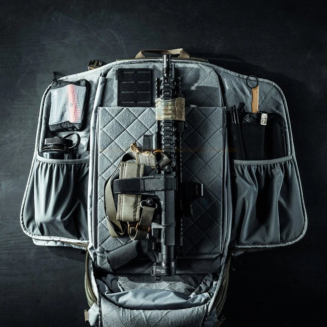 Equipped with a full clamshell main zipper, the FADE Adapt offers fast access to gear. Its internal layout includes a loop-velcro-lined rear panel compatible with hook-backed accessories and holsters. Multiple zippered pockets and mesh compartments keep items organized and secure. The external profile is clean and low-vis, with discreet webbing and concealed carry capability.