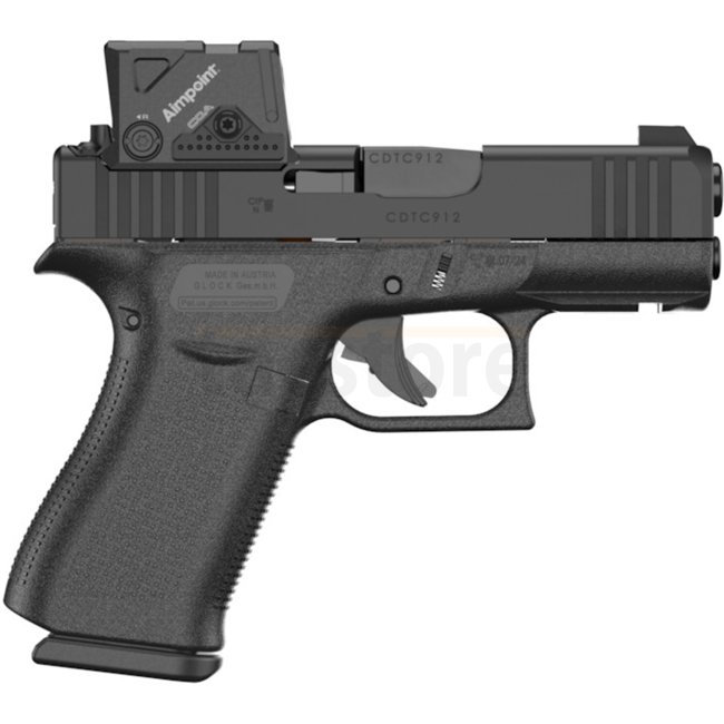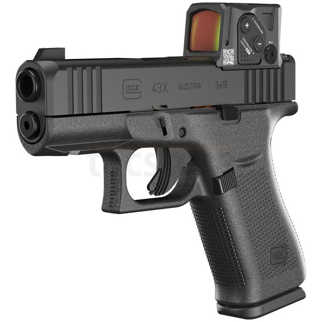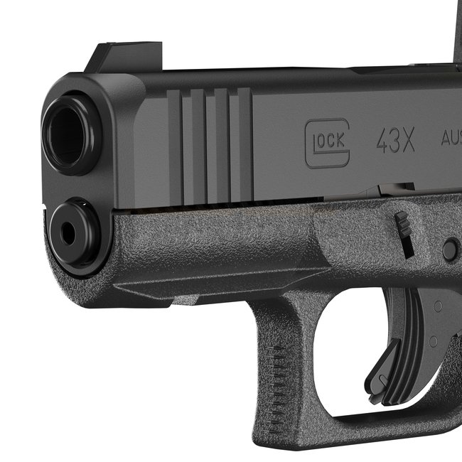 The GLOCK 43X A-CUT™ COA™ Combo combines the reliable G43X Slimline pistol with the advanced Aimpoint™ COA™ red dot sight. This model features a subcompact slide and compact frame, making it ideal for concealed carry. The Aimpoint A-CUT™ interface allows the COA™ sight to be mounted directly onto the slide without the need for adapter plates, ensuring a low-profile and stable configuration.