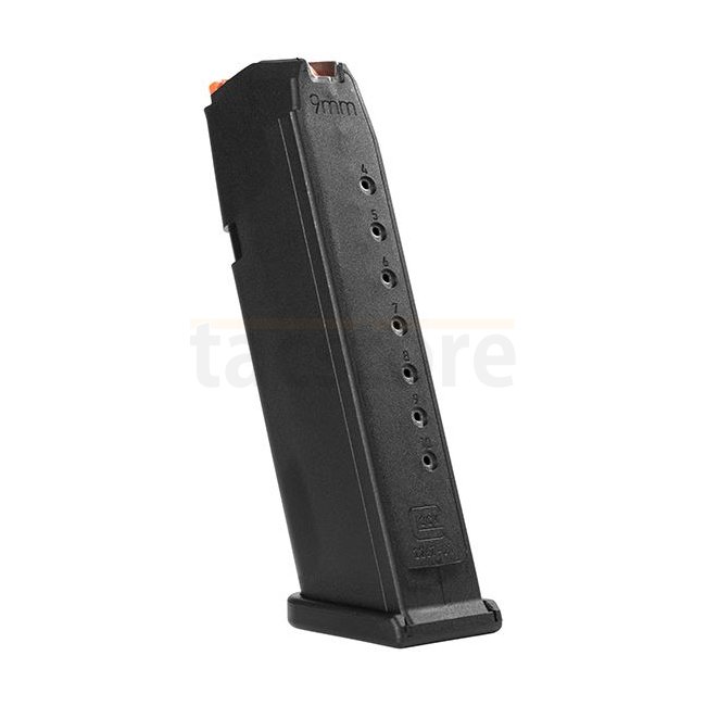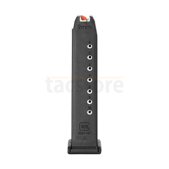 Built for the Glock 17, this 10-round 9mm magazine with a bright orange follower delivers reliable performance, ensuring easy visibility during operation.