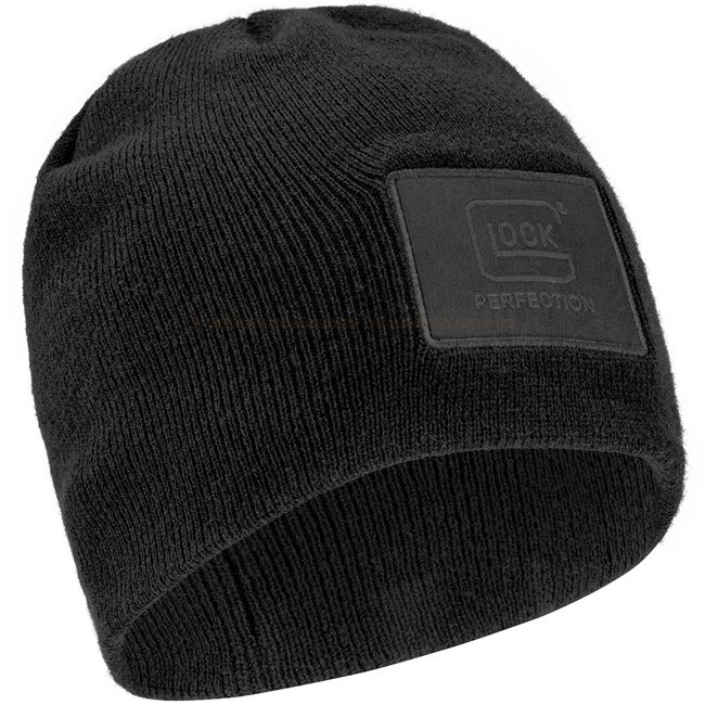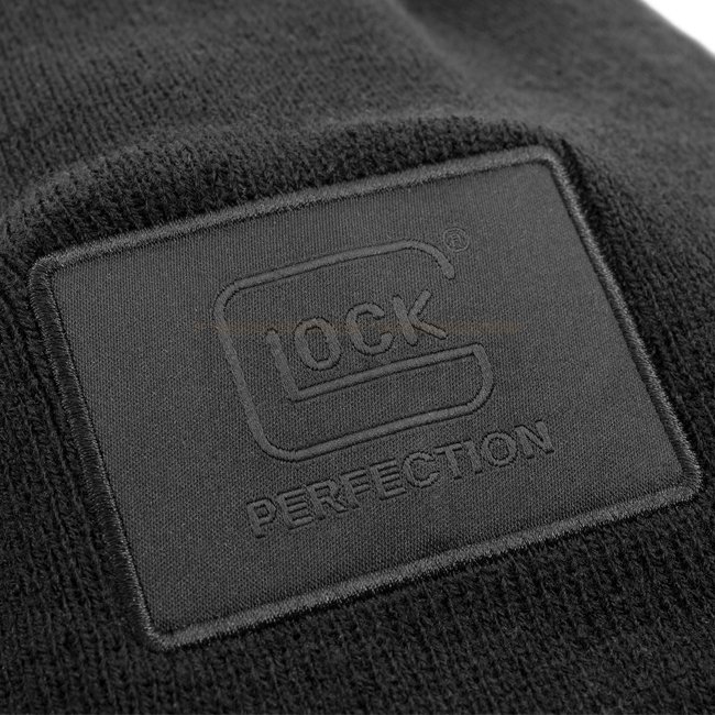Glock Perfection Beanie - Black: Stylish black knitted beanie made of 100% polyacrylic with embroidered badge and silver flag detail.