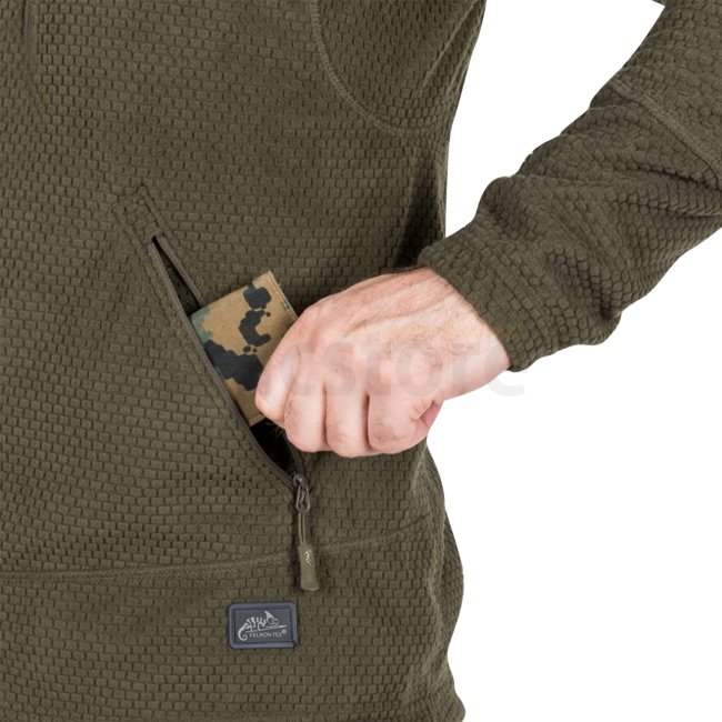 Helikon-Tex Alpha Tactical Grid Fleece Jacket is a lightweight fleece jacket perfect for layering. Features reinforcements on elbows and shoulders, multiple zippered pockets, drawstring at the bottom, and elastic cuffs and hood for a perfect fit.