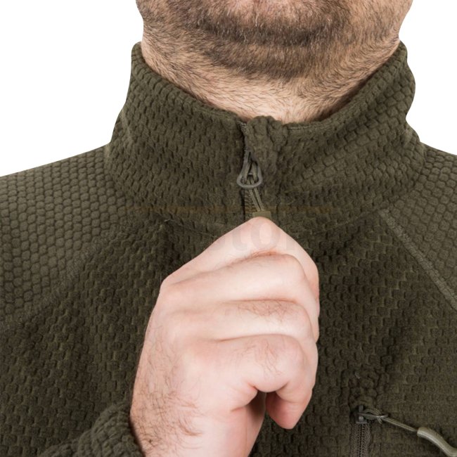 Stay warm and comfortable in the Helikon-Tex Alpha Tactical Grid Fleece Jacket. Lightweight fleece with elbow and shoulder reinforcements, five zippered pockets, and adjustable drawstring for a perfect fit.