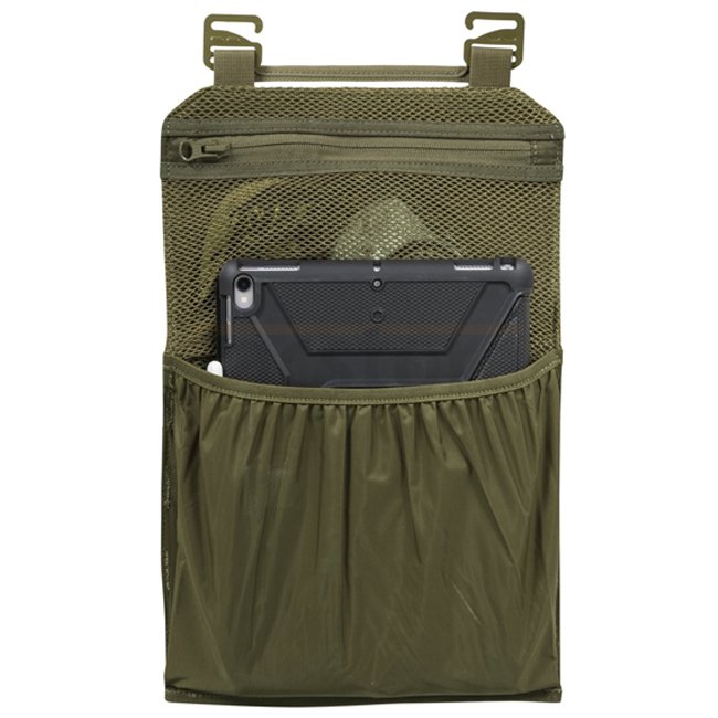 Large organizer insert that can be attached to various of our backpacks with G-hooks. This insert has a carry handle, a velcro panel compatible with the Versatile Insert System®, a zippered pocket and a pocket with elastic cuffs. Can be carried in a backpack or hung on the car seat. Compatible with BAIL OUT BAG®, EDC LITE®, EDC® PACK, RACCOON MK2®, RATEL MK2 and other systems with velcro fleece.