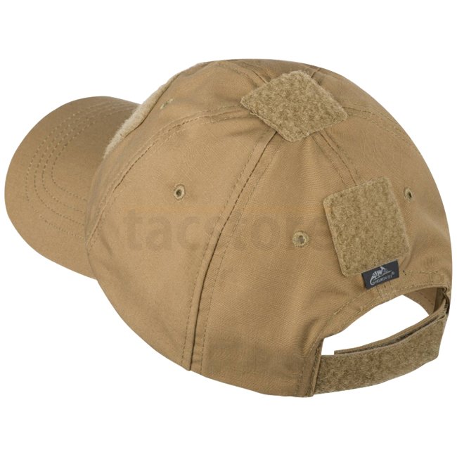 Adjustable baseball cap equipped with a set of soft Velcro panels for ID/morale patches and other items. Intended for use in hot weather conditions. Mid-depth cut works with variety of LE/Mil headgear systems.