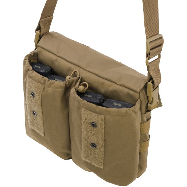 Helikon-Tex Claymore Bag - Coyote: Versatile tactical shoulder bag inspired by the US Army M18A1 mine carrier. Ideal for outdoor, urban, and firearm activities. Features flat pockets for AR/AK magazines. Dimensions: 31 x 22 x 20 cm. Weight: 370g. Volume:
