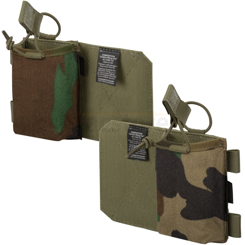 Helikon-Tex Competition Carbine Wings Set - US Woodland. Designed to enlarge MultiGun Rig capability to carry extra ammunition with stability and anti-slip interior for standard AR/AK magazine. Made of Cordura 500D, weight 100g.