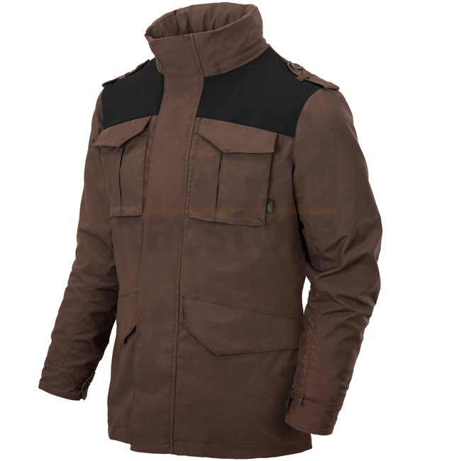 Helikon-Tex Covert M65 Jacket - Earth Brown / Black A - 3XL is a modern field jacket based on the iconic M65 pattern. Perfect for covert operations, it features functional outer pockets for convenience and durability with DuraCanvas fabric. Unique detacha