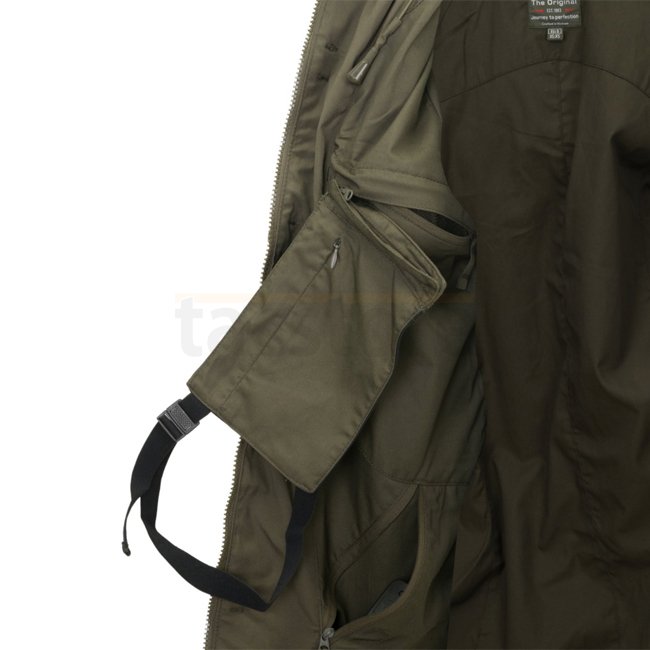 Helikon-Tex Covert M65 Jacket is a modern field jacket based on the iconic M65 pattern. It will be perfect for covert operations when discretion and unconventional methods of work are important. Equipped with functional outer pockets, it allows you to conveniently carry items necessary for performance and self-defense. Thanks to the use of a durable DuraCanvas fabric it will also be an excellent choice for everyday use, especially in the autumn and winter period, when it will protect the user from light rain and wind.A unique patent used in the M65 jacket is a pocket that can be detached and used as a separate fanny pack for documents or a phone. Inside, symmetrically on the left and the right side, there are pockets for magazines. The two outer pockets on the sides can serve as improvised dump pouches.This classic military jacket has been additionally reinforced in places exposed to damage and equipped with a hood hidden in the collar. The front is fastened with strong Canadian buttons and a "break-away" zipper which allows immediate unfastening of the jacket.