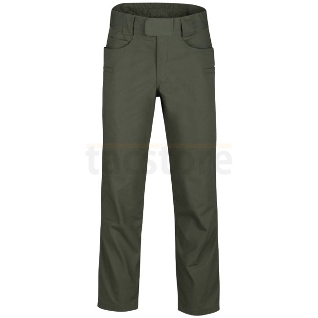 The Greyman Tactical Pants® combine tactical features with a low profile look, featuring a crotch gusset for ease of movement, an integral elastic belt with hook&loop adjustment, and nine pockets. Specifications include a material composition of 65% Polye