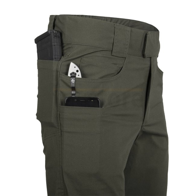 Elastic belt, spacious pockets, durable zippers - the Helikon-Tex Greyman Tactical Pants in Coyote, 3XL, Regular are perfect for outdoor adventures. Made from 65% Polyester, 33% Cotton, and 2% Elastane, these pants weigh 460g and feature various pocket op