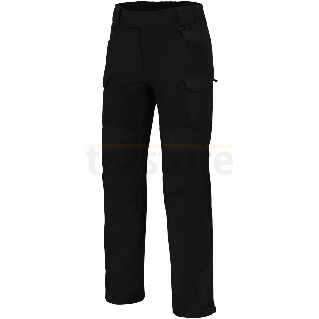 Comfortable and durable Helikon-Tex Hybrid Outback Pants in Black M-Regular size with wax waterproofing, reinforced pockets, and knee reinforcements. Hybrid construction for freedom of movement, anatomical cut, and hook&loop leg cuff adjustment. Material: