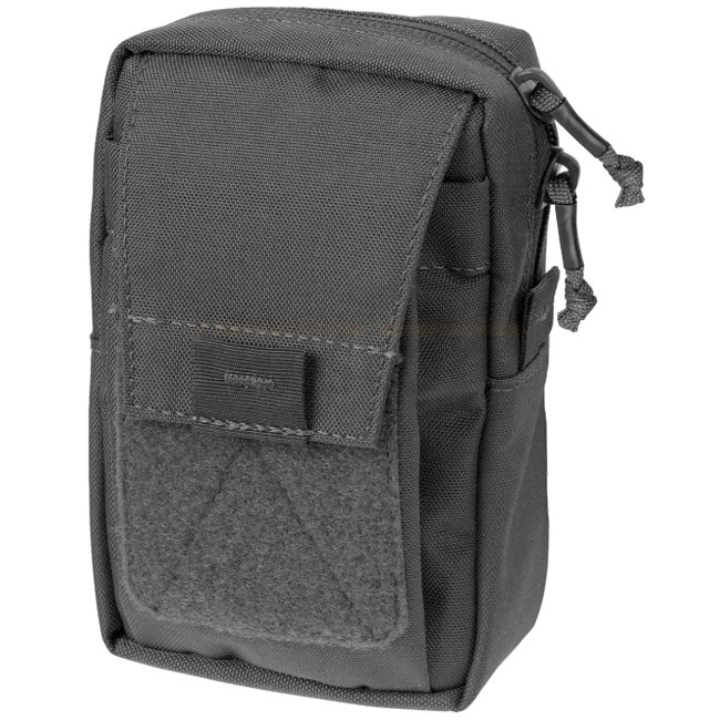 The internal pocket closes with a velcro-patch, has five flat pockets, one elastic drawstring pocket and several elastic bands to slide items beneath, a D-ring and internal zippered pocket. Outer part of the pouch has a zippered pocket, two small flat pockets, a paracord handle and four elastic bands. There are two elastic opening limiters to prevent full opening of the pouch and items from spilling out. The Admin Pouch can be worn on belt or integrated with MOLLE/PALS.