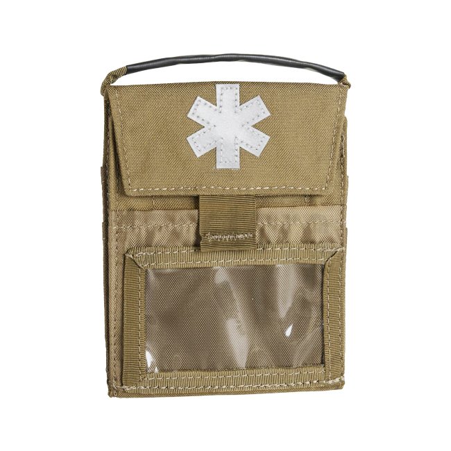 Helikon-Tex Pocket Med Insert - Coyote: Lightweight first aid kit for pants pocket. Includes gloves, ICE Card, resuscitation mask, plasters, dressings, saline bottle, and more.