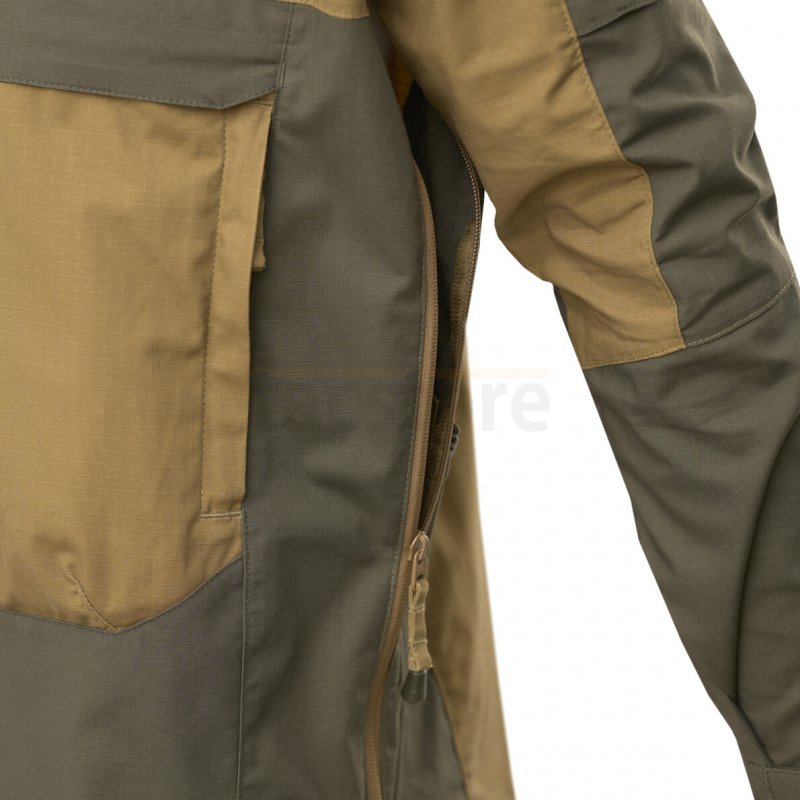 The Helikon-Tex Tracer Anorak Jacket is based on the cut of the Helikon-Tex Woodsman Anorak, the big difference is the material. The Tracer Anorak Jacket is made of a thin, weatherproof material, without a warm inner layer and is therefore ideal as a top layer in changeable weather, even over a warm fleece jacket. This makes it ideal for hiking, tactical operations and other outdoor activities.