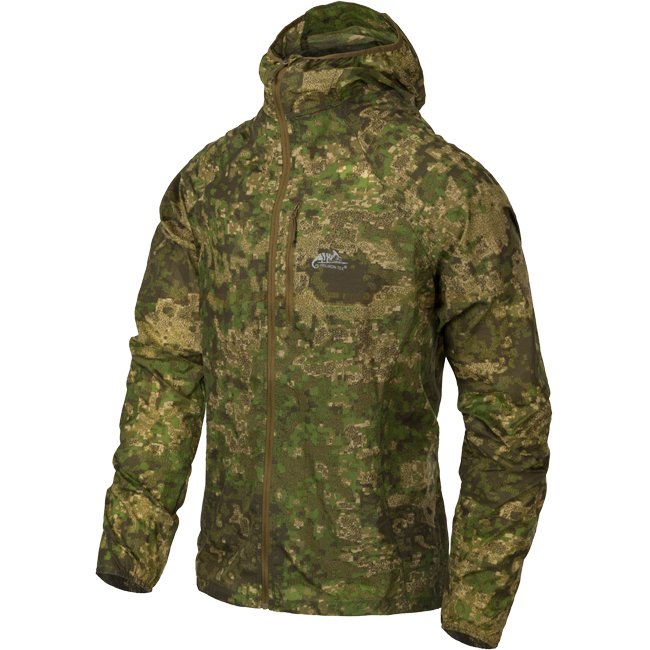 The Helikon-Tex Tramontane Wind Jacket in PenCott WildWood color and 2XL size is an ultra-light windproof layer, weighing only 120g. It can be packed into a selfpack pocket, compressing to the size of a soda can. This jacket is made of durable WindPack Ny