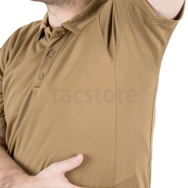 Stay fresh and comfortable in the Helikon-Tex UTL Polo Shirt Topcool Lite. Lightweight and quick-drying fabric with non-rolling collar. Features a loop for glasses and left upper sleeve pocket. Navy Blue, XL size.