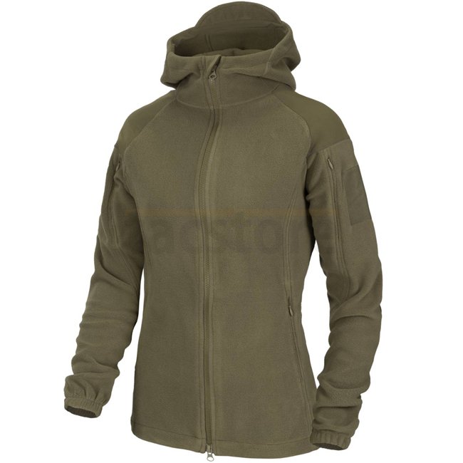 Stay warm and stylish with the Helikon-Tex Women's Cumulus Heavy Fleece Jacket in Taiga Green XL. This fleece jacket is specifically designed for females with an anatomical cut that provides warmth and breathability. Features two-way YKK zipper, multiple