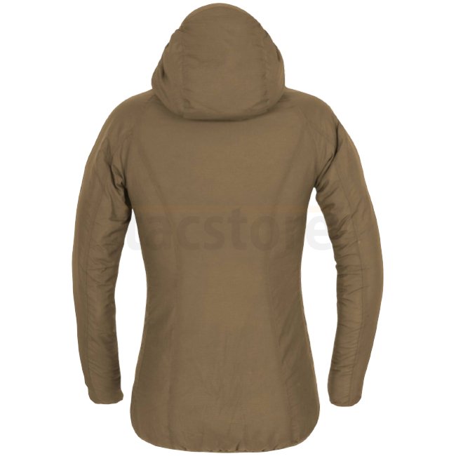 "Women’s version of a lightweight, insulated Wolfhound jacket with a hood. Thanks to the protective DWR layer, it protects against light rain. The Climashield Apex insulation, however, ensures thermal comfort even if the jacket gets wet. What’s more, the nylon fabric with a dense weave increases wind resistance. The elastic hem at the bottom of the jacket, at the mock-ups and on the edge of the hood also increases comfort. The hip pockets are lined with a light fleece that protects your hands against cold. Zippered chest pockets accommodate documents and small items. Wolfhound will work as a main jacket or as an additional insulating layer in combination with a thicker outer jacket.