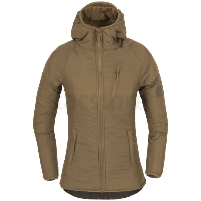 Stay warm and dry with the Helikon-Tex Women's Wolfhound Hoodie Jacket. Lightweight and insulated with Climashield Apex padding, this jacket offers protection from light rain and ensures thermal comfort, even when wet. Featuring a padded hood, zippered po