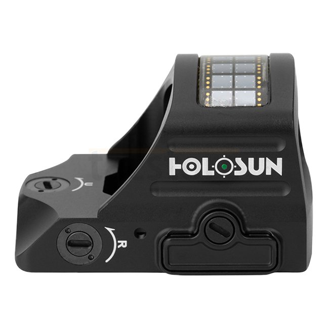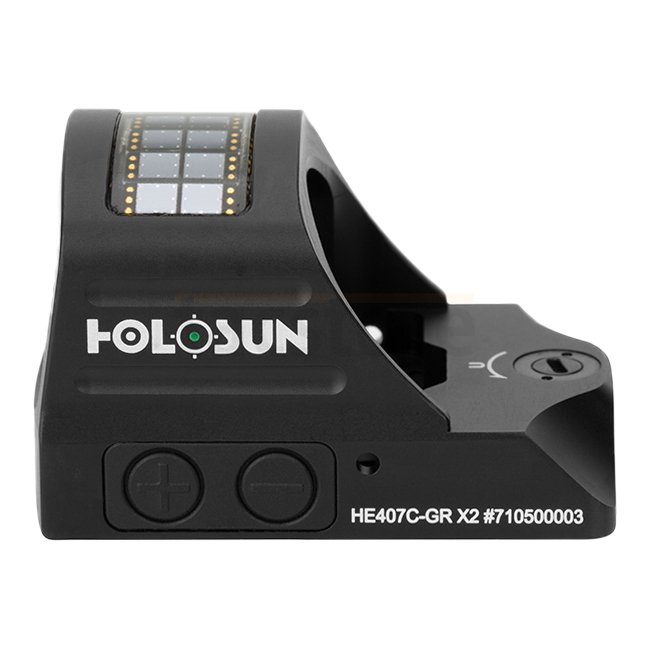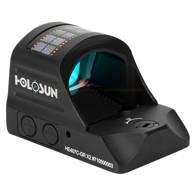 The Holosun HE407C Micro Green Dot is a pistol-sized optic with an open frame for a large view, with clear glass and a rugged 7075 aluminum housing. It is powered by a CR1632 battery and Holosun’s innovative Solar Fail-safe back up. The HS407C will run up to 10 years on a single battery on setting 6. It comes equipped with Holosun's Shake Awake technology with last setting recall. This optic has all features in one tough, small package and is compatible with Trijicon RMR footprint mounts.