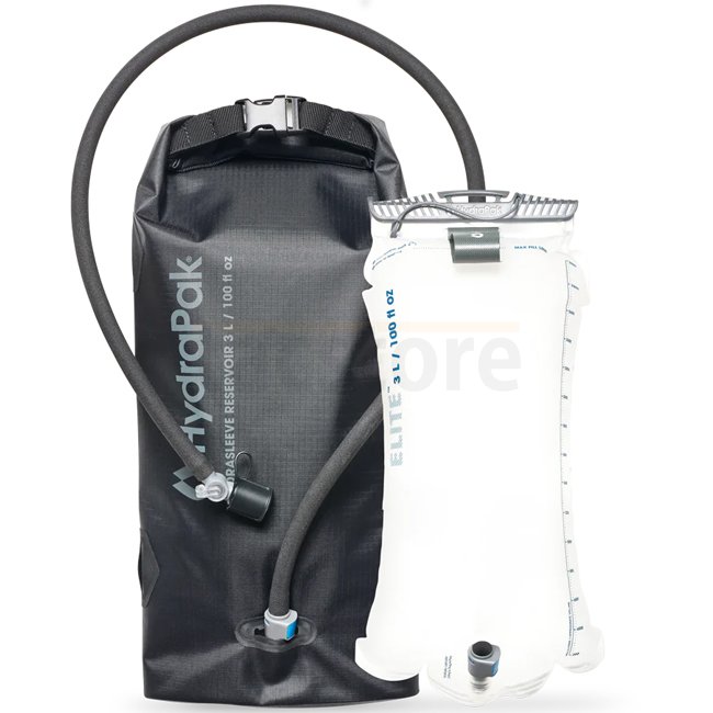 Designed to withstand rough handling outside your pack, the insulated HydraSleeve™ keeps your water cold in any conditions. The 3L Elite™ reservoir features a soft grab tab for quick loading and unloading, along with an insulated HydraFusion™ drink tube, high-flow Comet™ valve, and dust cover. Four lash points allow easy attachment to any gear setup, while the roll-top closure doubles as a convenient handle for carrying or hanging as a gravity feed system.