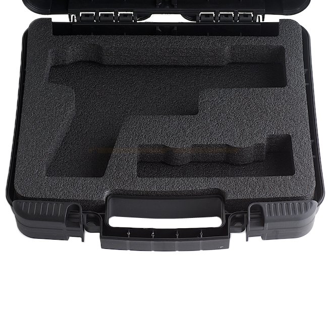 Compact and lightweight IMI Defense Pistol Case in stylish tan color, measuring 270 x 240 x 70mm and weighing just 445g. Ideal for portable and secure handgun storage.