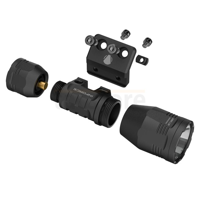 The ARC‑350 LR‑M features a modular design, where its LR head delivers a peak of 75 000 candela. It also supports a spill mode offering 1 200 lumens. Powered by a rechargeable 18350 cell, it provides up to 45 minutes of runtime. The body is made of 6061‑T6 aluminum with Type‑III hard anodized finish, meeting IPX8 to 20 m and MIL‑STD‑810H. A M‑LOK‑45 mount is included.