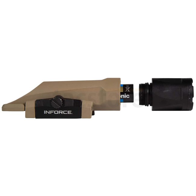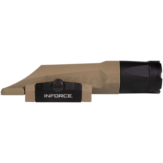 Inforce WMLx White Gen3 - Dark Earth: Lightweight and durable polymer weapon light with 1100 lumens output. MIL-STD-1913 mount, waterproof up to 20m, and includes pressure switch for easy operation.