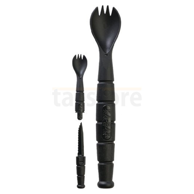 The Field Kit Spork Set is perfect for camping, hiking, picnics, storing in gloveboxes and packs, and eating on the go. Made from food and water safe Creamid, the Sporks are dishwasher safe. The Sporks feature a spoon/fork combination at the base and a serrated knife internally. The knife is accessed by pulling on both ends of the Spork. The overall length of each spork is 6.875” / 175 mm. The blade length of the knife is 2.5” / 63.5 mm. Made in the USA. |