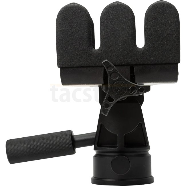 The Reaper Grip Direct Mount allows you to securely mount your rifle to your tripod. The direct mount simply screws onto your tripod's rotating center column and allows for 360° panning. The Reaper Grip features a patent-pending padded curved claw that conforms to your rifle's straight or tapered stock and chassis for unwavering stability. Without comparison, the Reaper Grip maximizes proper shooting technique outside of the supported prone position. The Reaper Grip allows for limited vertical movement that relies on the strength of the grip. Like all Reaper Grip systems, the Reaper Grip Direct Mount is compatible with both 3/8"-16 and 1/4"-20 (with included insert) threaded studs.