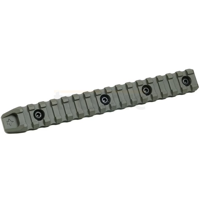 KRUK 16 Slots Picatinny Rail M-LOK - Olive: Enhance your firearm with this durable 16-slot rail system in olive color compatible with M-LOK accessories. Easy to install and provides a secure platform for attaching various tactical upgrades.