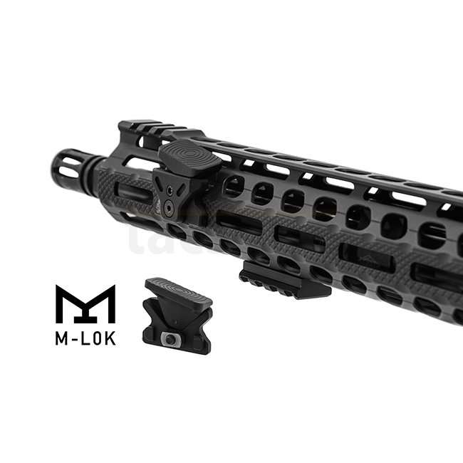Leapers M-LOK Angled Index Mount - Black: Reversible design, thumb indexing, removable spacer. Compatible with most handguards. Durable 6061-T6 aluminum, compact dimensions of 35x37.1mm, lightweight at 22.7g.