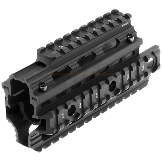 Enhance your Zastava M92 with Leapers Pro M92 Quad Rail Drop-In Handguard in sleek black finish. Picatinny mount, 151 x 52 x 81mm dimensions, 266g weight, and durable aluminum material ensure ultimate functionality. Elevate your shooting experience now!