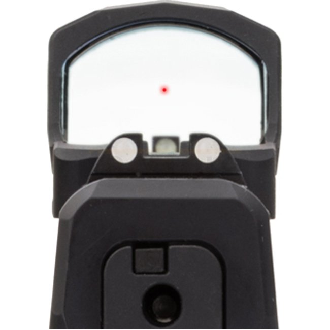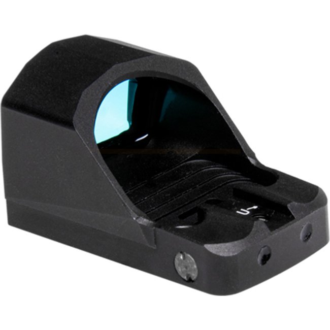 Compact Leapers Reflex Mini Sight 1.6 Inch in sleek black finish. 1x magnification, unlimited eye relief, and 3 MOA Dot reticle for precision targeting. Red brightness levels with 1 MOA setting levels. Ideal for quick target acquisition, compact at 22 x 4