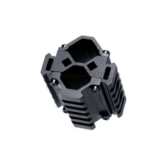 Mount your accessories securely on your shotgun barrel with the Leapers Triple Rail Shotgun Barrel Mount. Made of lightweight aluminum, this mount has 5 slots and is compatible with barrels with a diameter of 19 to 27.9mm. Weighing only 178.6g, it measure