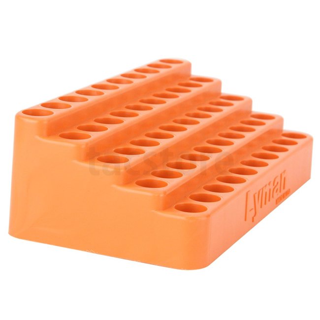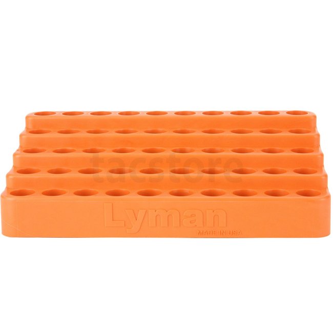 Lyman Bleacher Loading Blocks feature a raised, stair-step design that allows easy access to cartridges and smooth case handling during reloading. Each block holds 50 cases and is made from durable, solvent-resistant polymer.